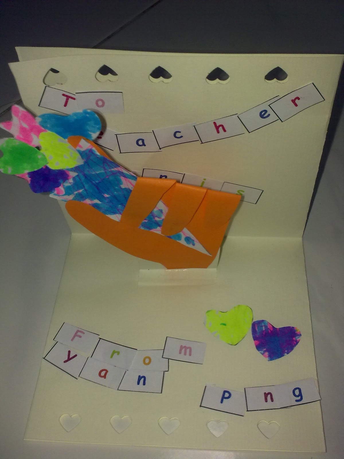 I made 2 teacher's day cards with Png Png for his Chinese teacher and English teacher.
