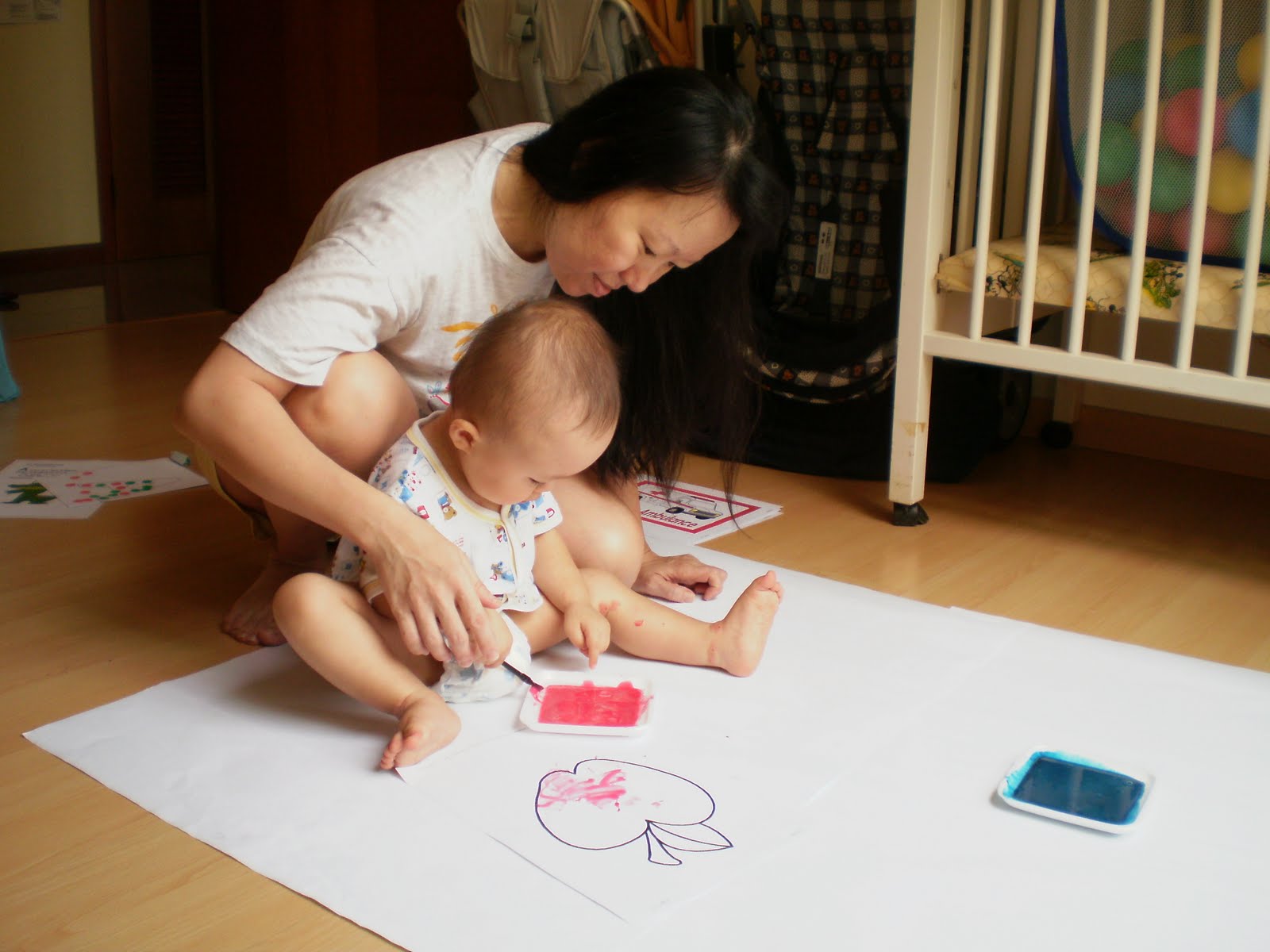 I made paint myself to let Png Png do painting (vinegar. baking powder, honey 1 spoon each and 2 spoons of corn flour and drops of coloring). I guided Png Png to color Apple